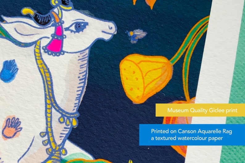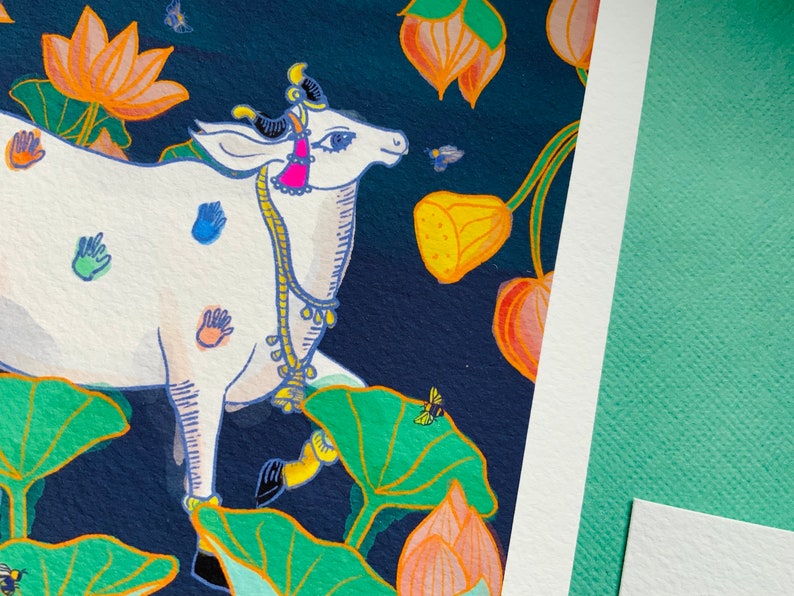 “Krishna’s Mangala Cow & Lotus illustration” is a print of my illustration.